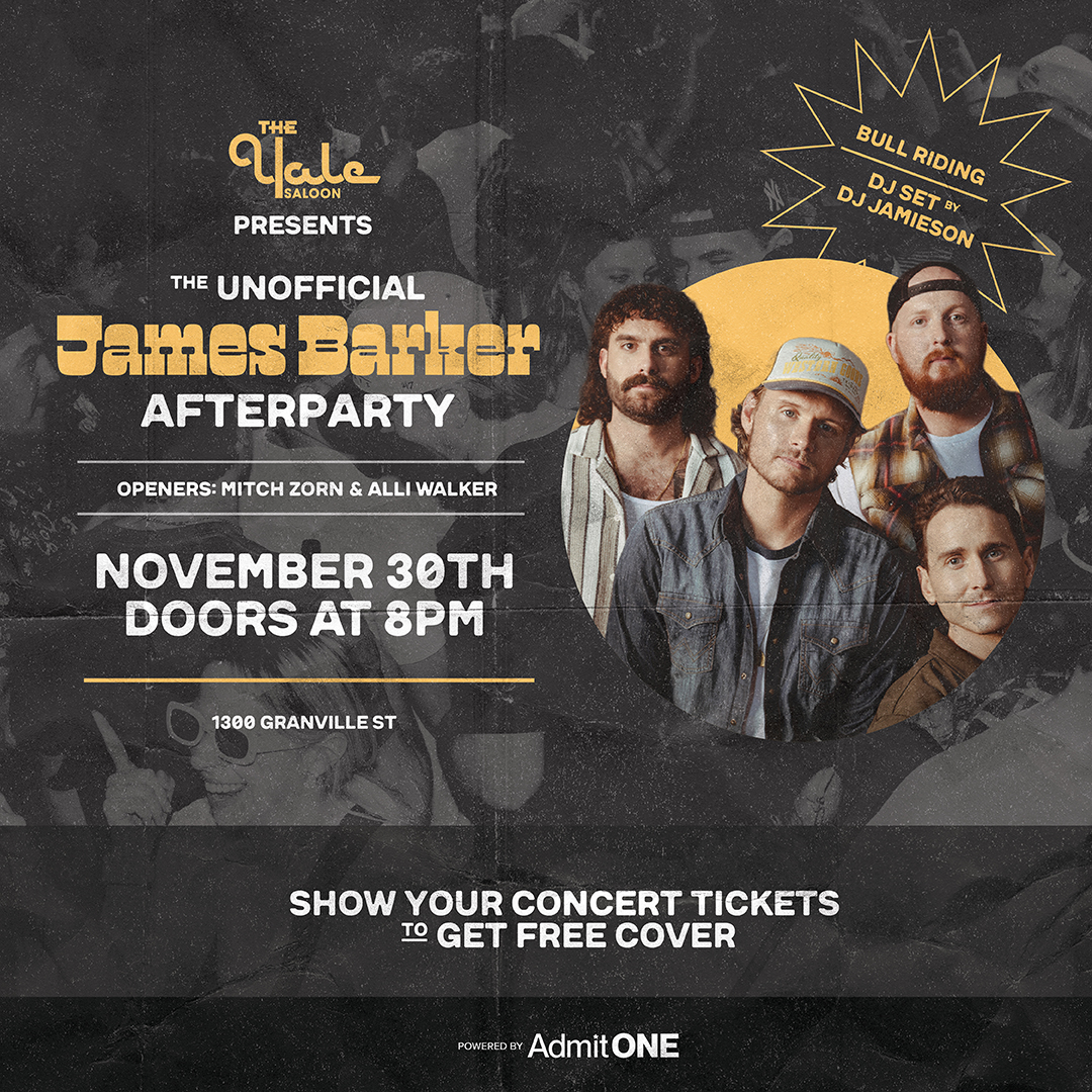 he James Barker Band is in town with Ali Walker and Mitch Zorn and we’re keeping the party going at The Yale Saloon for the Unofficial After Party!